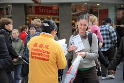 每天,许多经过城市广场的市民和游人都直接从这里了解到法轮功被迫害的真相,他们纷纷在征签表上签名,有的还照相,同时还表达了他们对反迫害的声援。