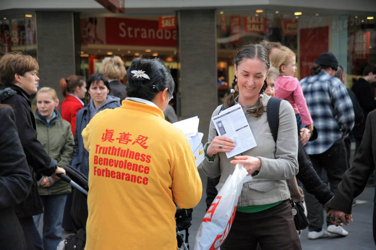简是当地的一位中年妇女,当天正带着3个来自中国杭州在澳短期学习的女孩在唐人街购物,她了解到真相后说,应该让澳洲政府意识到这件事,人们应该站出来说话,让大家知道发生了什么。并且,活摘器官在很多国家是无法接受的,这是无视人权的表现。
