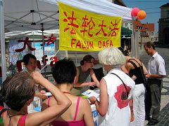 不少看到法轮功游行队伍的德国民众在游行结束后,又找到法轮功的展位,他们希望能得到更多的信息。七年前中共开始对法轮功开始发动了全面的迫害,法轮功在全世界進行和平理性的抗争,随着令人发指的活体摘取法轮功的学员的行径被揭露和证实后,中共对法轮功迫害的事实也逐步曝光,法轮功学员也正在通过各种渠道,全面的向社会各界披露中共的罪行,早日结束这场迫害。