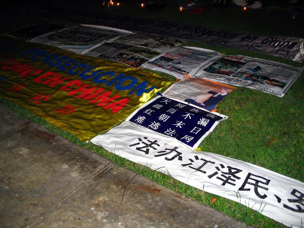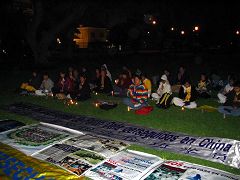 ,抗议中共劳教所、监狱虐杀法轮功学员,活体摘取盗售器官的罪恶暴行,呼吁国际社会共同制止这场人类历史上最惨烈的迫害。学员们还点燃烛光,悼念所有被中共迫害致死的大陆同修。