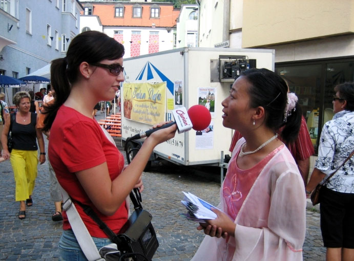 ![]() 孩子们也认真了解迫害真相,并支持反迫害 | ![]() 接受电台记者采访 |