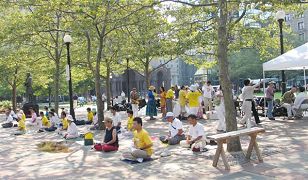 来自台湾的江先生介绍说:我们每天一大早就来到这个公园里,炼功、发正念、举办酷刑和活摘器官的模拟演示,来往的路人看到真相后,都很震惊。
