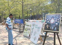一位西方男子上前来和我握手,鼓励我们坚持做下去,让更多的人良心得以发现。一位西方中年妇女看了反酷刑展后,含着眼泪在反迫害征签表上签名,她哭着说:太残忍了。