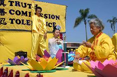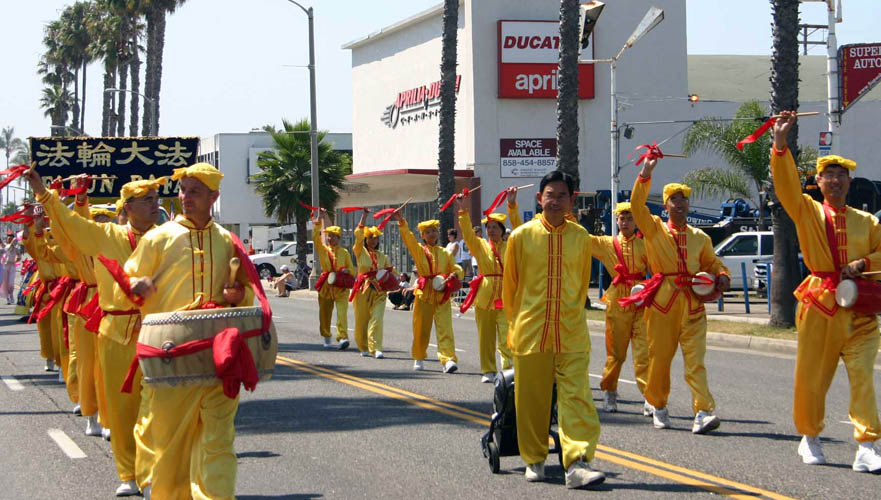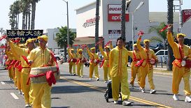 上午10点左右,游行正式开始前,主办者送来了一个漂亮的奖杯——原来经过游行前的项目评审,法轮功学员获得了这次游行的最佳创作奖。这是法轮功学员们第三年参加海边市的独立日游行,学员们的游行队伍包括大型“法轮大法”横幅、花车、腰鼓队和舞蹈队。法轮功学员们的队伍所经之处,沿途观众不断的鼓掌、并向他们挥手表示欢迎。