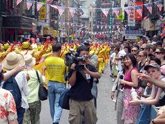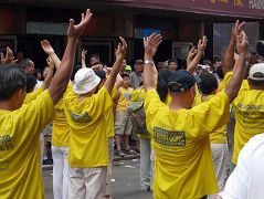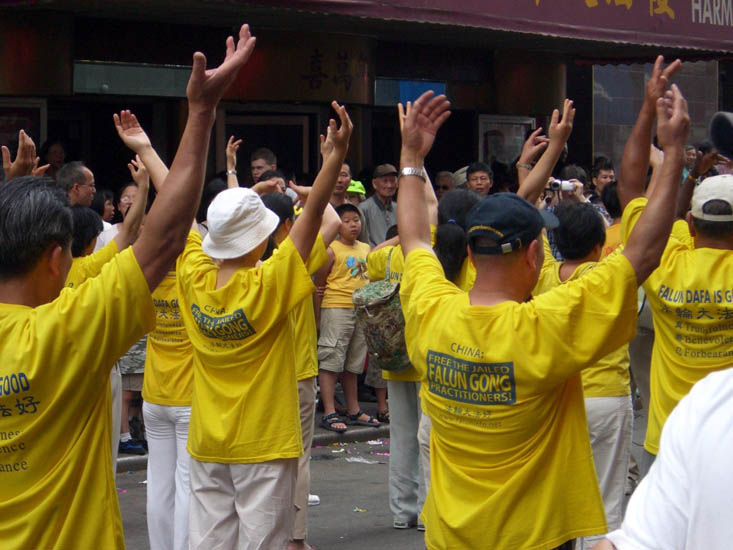 游行前后,都可见到唐人街的老华侨和法轮功游行队伍中的学员相互打招呼、友好问候,本来大家就都是老熟人、老邻里,人心对人心,在真善忍的真相面前,中共制造的仇恨和间隔无法长久。