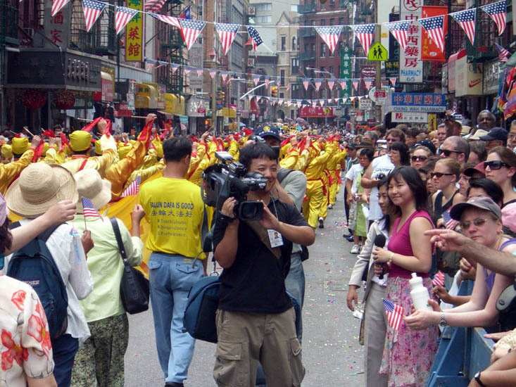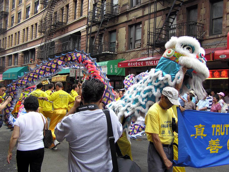 经过法轮功学员几年来坚持不懈的努力讲真相,曼哈顿唐人街的人们也越来越了解法轮功、和敢于接近法轮功了。今年美国独立节的游行,尽管中领馆故伎重演,百般施压干扰,法轮功社团还是受到邀请并在游行中大受欢迎。