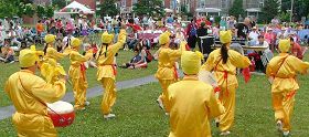 ![]() 一群孩子在2004年6月法轮功学员参加沃敦区夏季社区活动时学炼法轮功 |