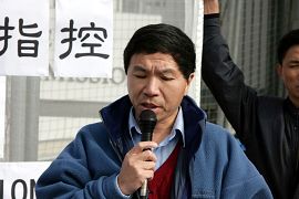 宣读给新加坡大使的公开信 |  新加坡大使馆一秘(左)接受了法轮功学员提交的信件 |