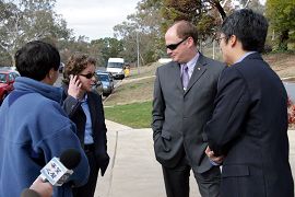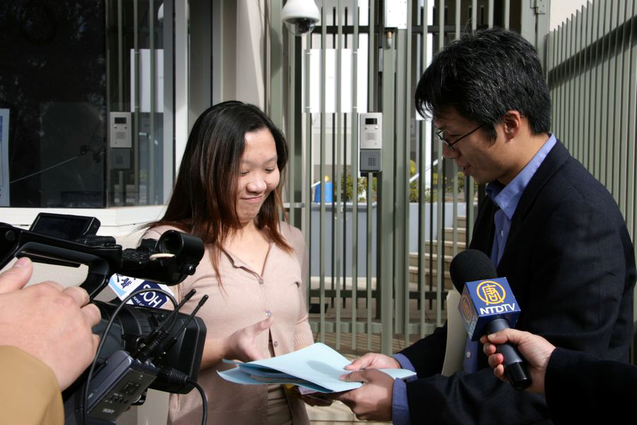 【明慧网2006年7月30日】2006年7月19日下午,澳大利亚法轮功学员就新加坡当局7月14日以所谓“非法集会”的罪名,控告九名当地法轮功学员事件,来到新加坡驻澳大利亚大使馆前举行新闻发布会,并递交了澳大利亚法轮大法学会致新加坡大使的公开信。新加坡大使馆一秘接受了信件和关于中共法轮功的资料,并表示会将信件转交给大使。