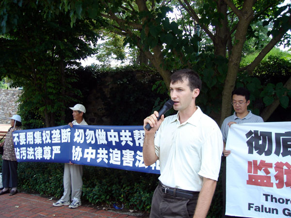 法轮功学员科特•皮尔曼说,新加坡的法律以严格著称,但是,这不能成为扼杀正义的借口。“如果说,纳粹在屠杀犹太人时,日本战犯在南京屠杀中国人时,有人在新加坡去揭露这些暴行,新加坡当局难道要用“非法集会”、“破坏秩序”等去起诉那些制止屠杀的人吗?”
