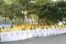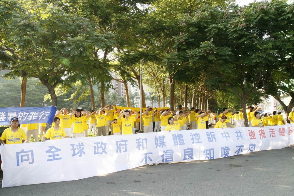 为声援在中国大陆受迫害的法轮功学员,台湾各地区的法轮功学员于28日晚上8点开始到29日晚上8点绝食24小时,并于29日下午3点聚集于台中市经国绿园道,举办“不信良知唤不回──向全球政府媒体控诉中共强摘活体器官”烛光追悼会。