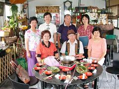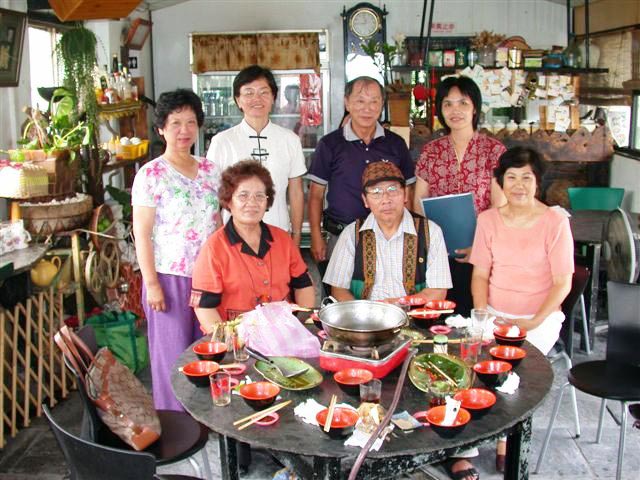 ![]() 许议员阿桃(中)当场向法轮功学员学炼起炼功动作 | ![]() 明了法轮功真相后,许议员(前排左一)设宴款待学员 |