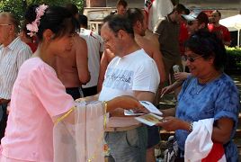 下午三点多游行结束后,学员们默契配合,有演示功法的,有三三两两随机组合到人群聚集的地方继续讲真相传大法福音的。学员纯正慈悲的心态使这次的活动办的圆满成功。