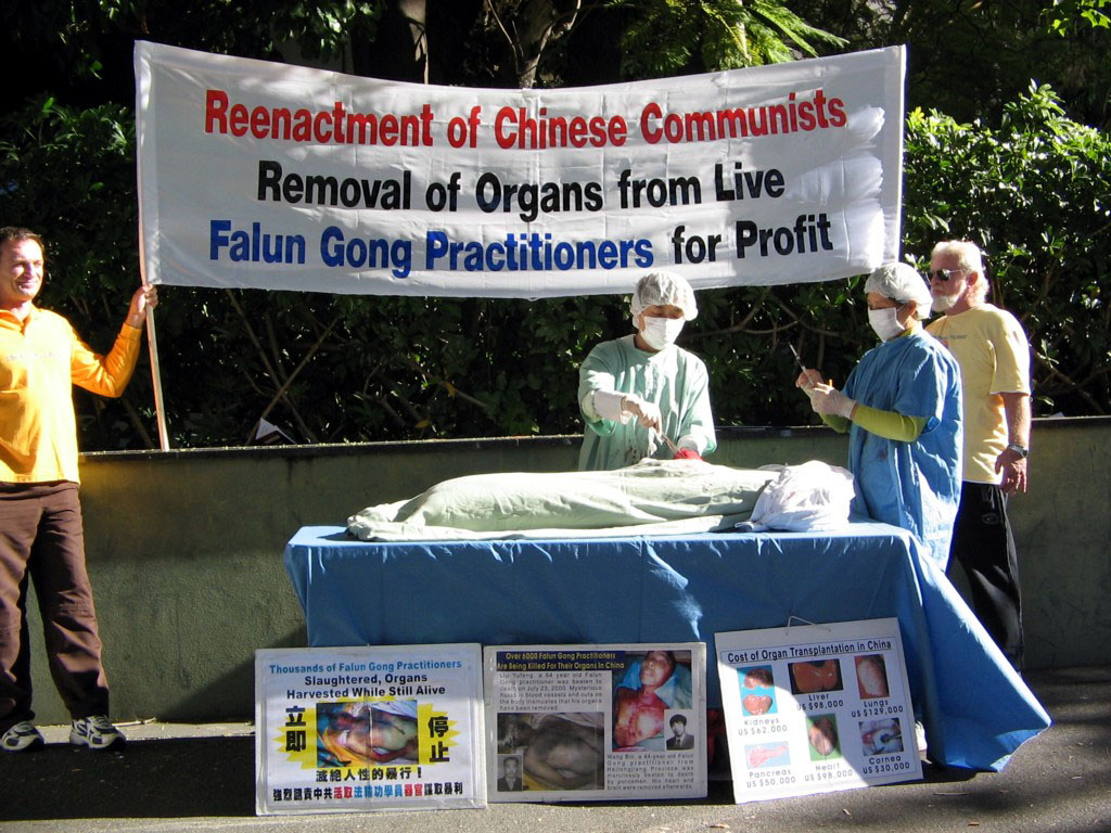 下午1点半,昆省部份法轮功学员来到高等法院前,现场设有真人模拟的中共活摘器官演示,各种揭露中共酷刑迫害和呼吁制止中共残暴行径的横幅、展板也纷纷展开,一些学员演示法轮功五套功法,一些学员派发真相资料并征签。