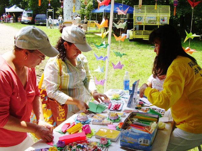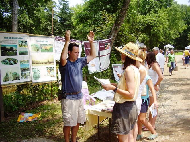 越来越多的游人对法轮功感兴趣,人们静静的观看功法演示,仔细的阅读展板,索取更多的资料,并表示希望学功。很多游人表示已经听说了中国法轮功学员器官遭活体摘取的报道,对中共残酷迫害法轮功学员表示愤怒,并主动要求签名反迫害。