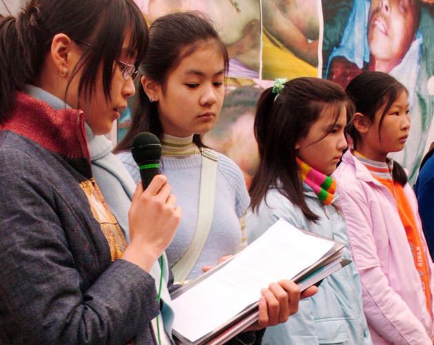 ![]() 这次活动的发起者17岁的严万颖在新闻发布会上发言 |