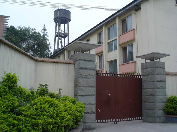 ![]() 该中心大门。大门右边的那幢工作人员宿舍。 | ![]() 关押大法弟子的那幢六层高的楼房。窗户上装着铁栅栏 |