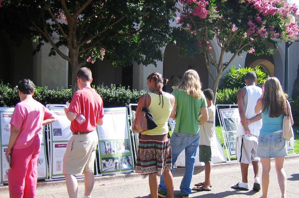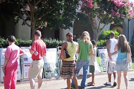 一次,有位中国游人路过展板,刚开始时他不敢接受“·九·评*”,说他在中国政府部门工作。一个法轮功学员就耐心的劝他不要失去这样的机会,因为在国内是不易接触到真相的;如果不敢拿,可以在这里多看看、走走。这位游人后来听了中共活体摘取法轮功学员器官的真相,也接受了“·九·评*”。