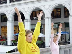 ![]() 人群被法轮功在中国遭迫害的真相所震惊 |
