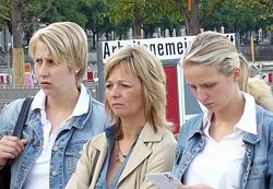一位戴着眼镜看去颇有阅历的女士说,她相信发生的这一切,相信法轮功学员在中国的境遇很糟糕,并担心的询问讲真相的中国学员是否长住德国,在得到确切答复后才放心的点点头。