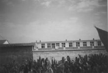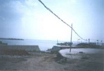 ![]() 图5 洗脑班的楼和西墙 (西墙上照样布满了碎玻璃) | ![]() 图6 洗脑班后的海滩 (此一带有许多不明建筑,插了五星血旗) |