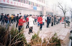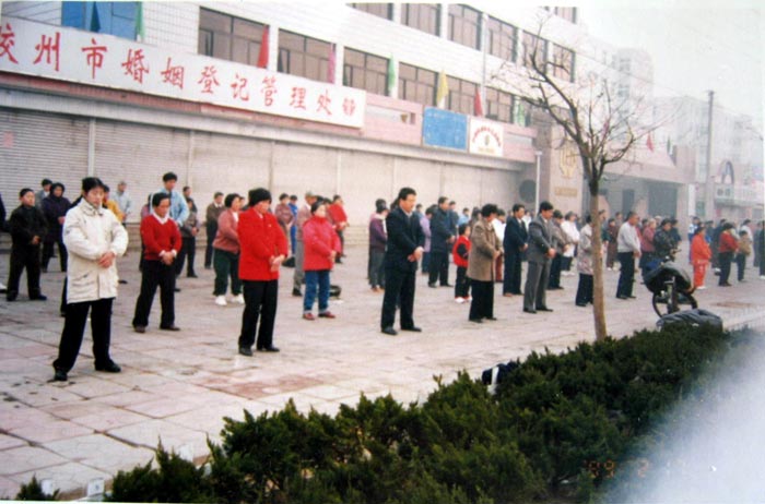 历史图片:1999年山东省胶州市民政局炼功点晨炼