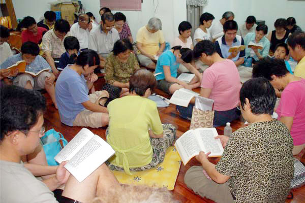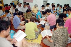 每周的学法安排大抵上是,晚上7:30开始通读一讲《转法轮》,如时间许可再反复读《精進要旨》或《精進要旨(二)》,大约9:30开始心得交流,到10:30左右结束。但结束后,仍有三三两两的同修继续做更深入的法上交流,或是如何帮助正在过关的同修在法上认识,或是电脑技术上的讨论,或是工作经验的探讨,或是……,留到12点发完正念才回家的,那更是常有的事。