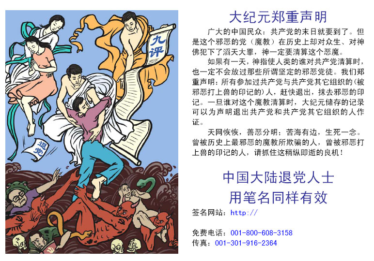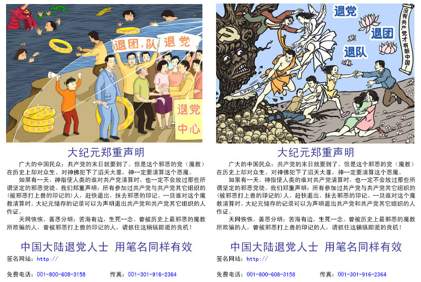 款二:大.纪.元;郑重声明(不干胶)签名网站:https:// 有意留了空白,请同修下载后填上最新的未被封锁的域名。