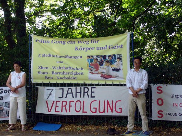 图片报道:德国法轮功学员汉堡中领馆前抗议七年迫害