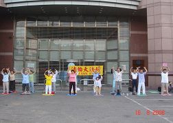 ![]() 台湾中坜市健保局炼功点的晨炼 |