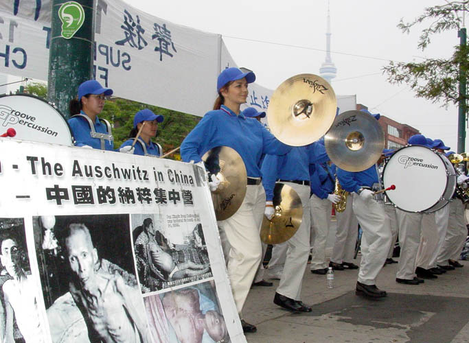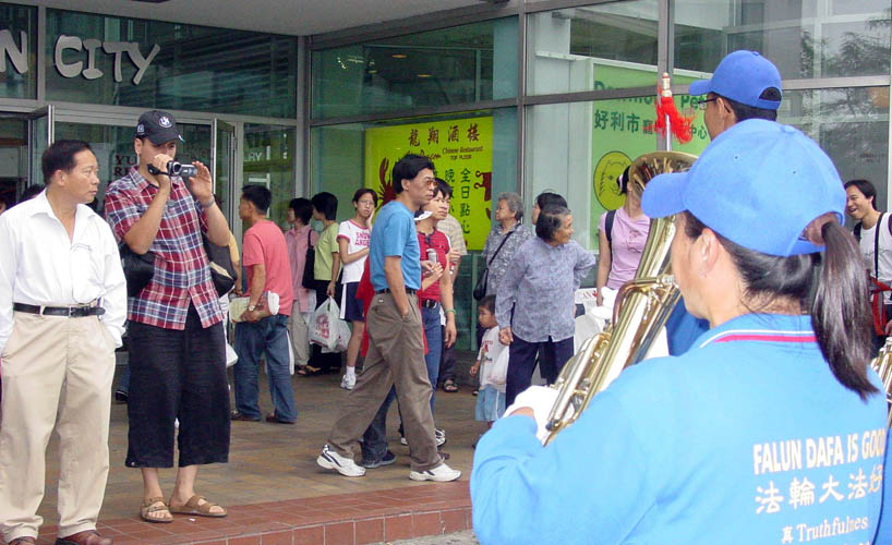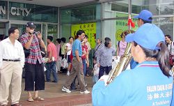 ![]() 天国乐团的演奏吸引人们来了解法轮功真相 |
