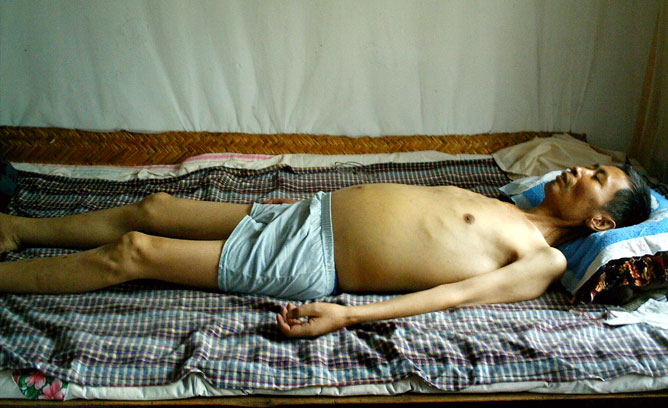 王守善被610绑架到洗脑班迫害,致使肺右上页恶性肿瘤,现在病情还在加重,生活不能自理。