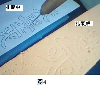 五. 将“四”中的一句放在“三”上。用锥子沿字的线条扎眼。如图4