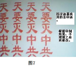 九. 在文具盒中放上与文具盒底部同样大小的一块薄海绵,在海绵上抹上油印机用的油墨,将图6放入其中,用时取出。根据印制效果,不理想的地方还可修改。如图7