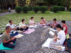 《转法轮》中说:“有些学员,他不按照心性要求去做,只炼动作不修心性,他不能算炼功人。”师父的法理清楚明白,所以,桃园农工炼功点的学员不敢有一丝怠慢,除了互相叮咛在家学法外,每星期六早上在炼过静功、发完正念后,就在原地围坐学法交流,谈谈彼此的修炼心得。最近,为了在发正念时思想纯净,大家用五分钟共同背《洪吟》上的一篇经文,年长的学员不担心背熟了又忘了,因为大家都明白,背熟了又忘了,跟没有背过,意义是完全不一样的。今天有一位学员说:“回家再复习便不会忘记啊!”好极了!我们都来当精進的炼功人。