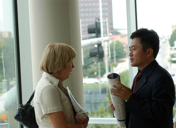 2006年8月17日下午,美国堪萨斯城法轮功学员在市普拉萨公共图书馆举办的公共集会上,当王文怡博士介绍了4月20日“白宫喊话”的背景情况,李祥春叙述了身为法轮功学员在中国被非法判刑3年中所经历的非人迫害后,与会者无不震惊于邪恶中共的无视人权和“活体摘售法轮功学员人体器官”的兽行。社会学教授威尔特建议大家去观看当地正在举办的“纳粹奥林匹克运动会--柏林1936”图片展。她说,2008年的奥林匹克运动会将在中国举办,人们应当记住当年希特勒大屠杀的罪恶,并且呼吁奥委会取消中共政权举办奥运会的资格。