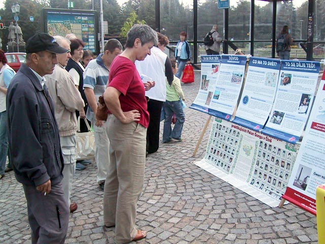 【明慧网2006年8月28日】2006年8月7日至10日,法轮功学员组织了一次跨越捷克莫拉维亚(Moravia)之旅,以使人们知道正在中国发生的中共盗摘法轮功学员器官的恐怖事件。他们访问了Ronov pod Radhotěm、Havíov、Frdek-Místek和umperk等城市,每到一个地方,都展示横幅与海报,揭露中共对法轮功的残酷以及活摘法轮功学员器官的暴行。