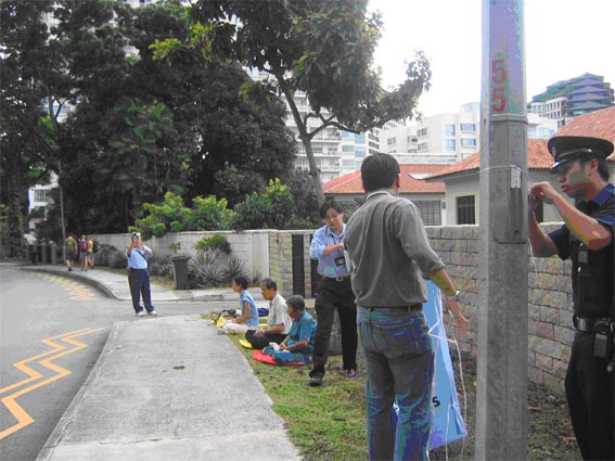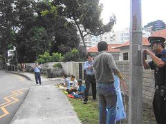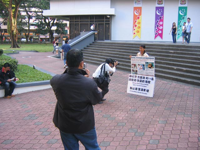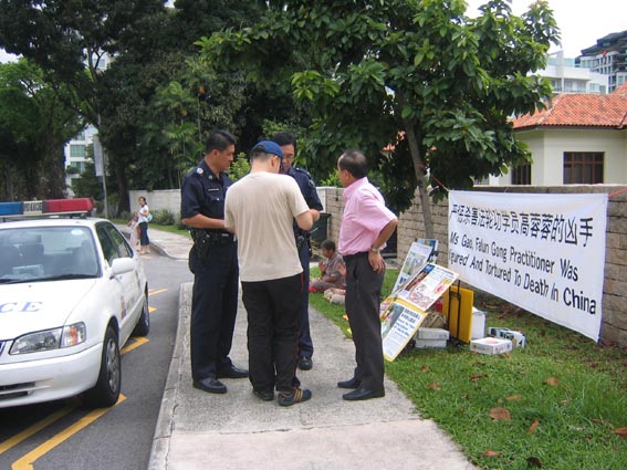 ![]() 新加坡法轮功学员在中使馆前和平抗议中共迫害法轮功 | ![]() 新加坡民众要了解真相,却遭到警察查问 |