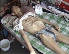 ![]() 被迫害得骨瘦如柴、奄奄一息的李万云 |