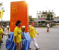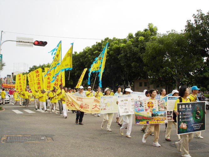 2006年7月23日,台湾嘉义法轮功学员举办了“法轮大法在嘉义”大游行。学员说:“中共残酷迫害法轮功已经七年了,但周遭还有不了解迫害真相的人,我们想用游行的方式,让世人知道法轮大法的祥和美好,了解中共迫害法轮功学员的暴行,让有缘人走进大法来。”邻近的云林县、台南县新营市的部份学员都赶来共襄盛举。