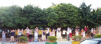 炼完功后,大家便一起学法,朗朗的读书声时而引起路过民众的驻足。学完法之后,我们坐下来交流彼此在生活中的修炼心得。有同修分享自己平时透过学法精进纯净自我,并谈到修炼人要“自觉”的向内找,她发现当自己向内找的力度加大时,就不会对人存在负面的想法。当精进不已的时候,不好的思想去掉许多,感觉身上的包袱变小了,人活的很轻松自在。