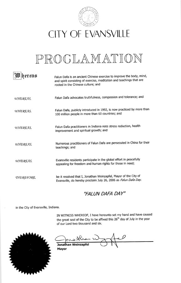 鉴于,在印第安纳州的法轮大法修炼者证实修炼法轮大法能减轻压力、增进健康、提高精神境界;