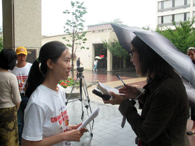 法轮功学员向前来采访的媒体记者 |   访问国会议员办公室2 |
