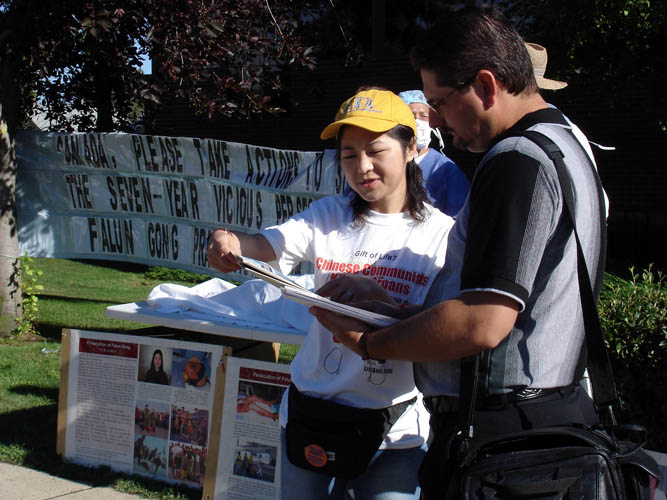 【明慧网二零零六年九月十日】加拿大独立调查团关于中共活摘法轮功学员器官的报告发表后,在全世界引起极大的震撼。为了进一步揭露中共惨绝人寰的法西斯暴行,为了向各地的政府、议员和媒体详细介绍独立调查团的报告和法轮功的美好,呼吁加拿大人民、政府、议员和媒体帮助和支持法轮功学员,谴责和制止中共暴行的继续,加拿大法轮功学员从二零零六年七月二十三日起,四、五人一组,分成几个小组,进行了全国性的SOS汽车之旅,行程达三万公里。这些学员访问了各地的大、中、小城市,约见了当地的市议员、省议员、国会议员、市长和政府官员,他们每到一地,向媒体举行新闻发布会,向当地群众散发真相资料。他们受到所在地政府和议员的热情接待,当地的报纸、电台、电视台把他们的汽车之旅作为新闻,纷纷采访和报道,揭露中共邪