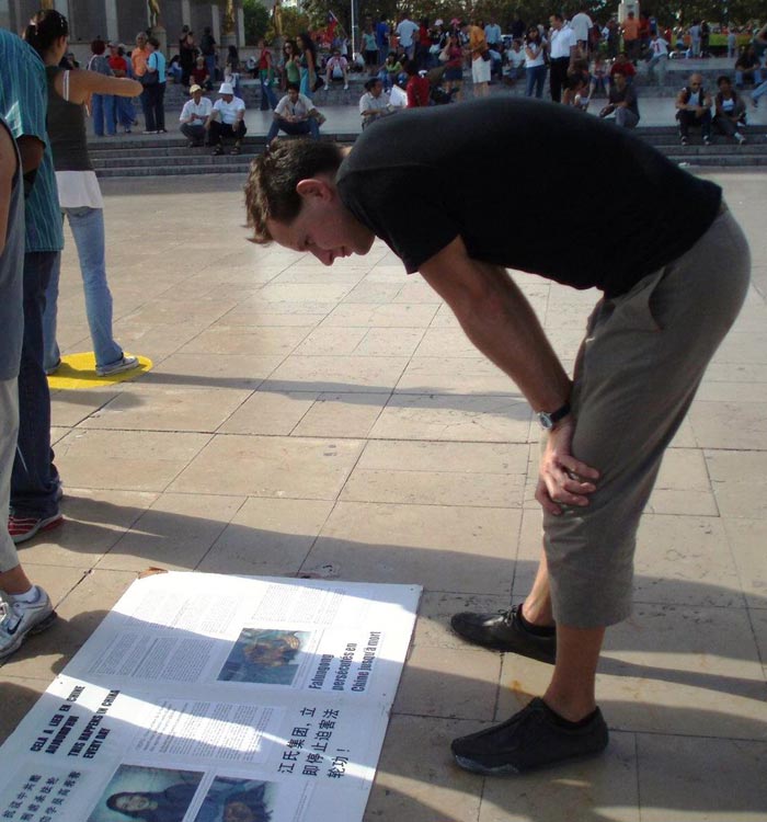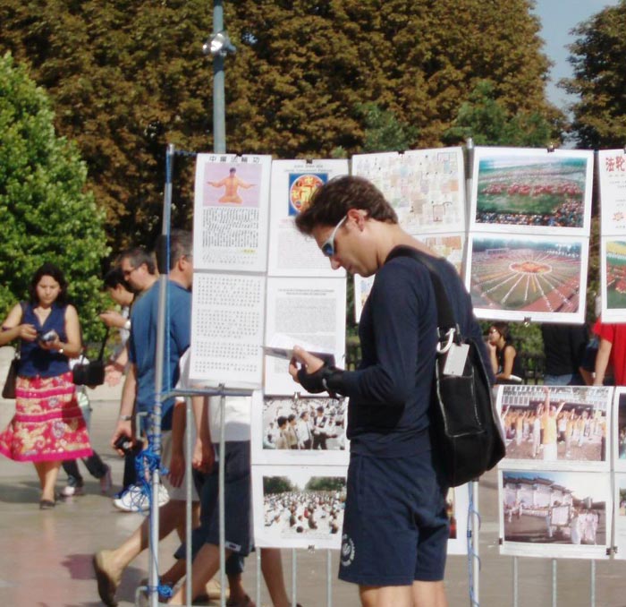 【明慧网二零零六年九月十二日】二零零六年九月十日星期日下午,法国法轮功学员在巴黎埃菲尔铁塔前的人权广场上向行人揭露中共对法轮功学员的残酷迫害,包括酷刑、非法劳教、判刑、活体摘取法轮功学员器官等各种非人行径。活动现场还用图片展板、功法表演等介绍法轮功及其在全世界的洪传和给世界人民带来的美好。法轮功学员的祥和善良与中共对法轮功的残酷迫害形成了鲜明对比,了解真相的人们纷纷伸出正义之手,签名声援法轮功学员,呼吁国际社会采取行动制止这场迫害。