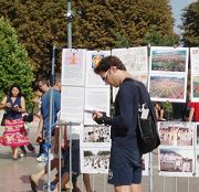 展板和传单上揭露的中共迫害法轮功真相引起人们的关注 |
