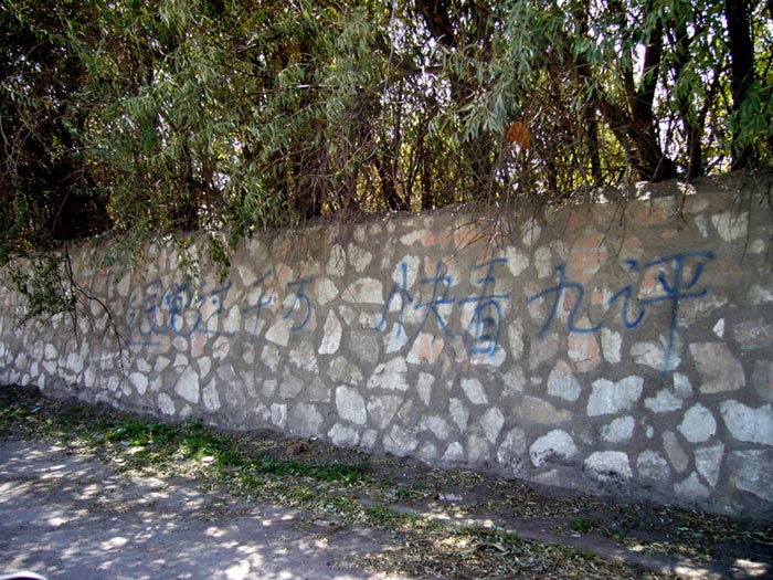 有的人看见法轮功学员,就喊:“哎!天灭中共,快过来,给我讲讲天灭中共是啥意思?”有同修修鞋时给修鞋工一讲三:退.,修鞋工就说:“我都在墙上看见了,退就退吧。”还有的世人高兴的跑到法轮功学员面前告诉说:“我上班时,看见路边墙上写着天灭中共,真好!”
