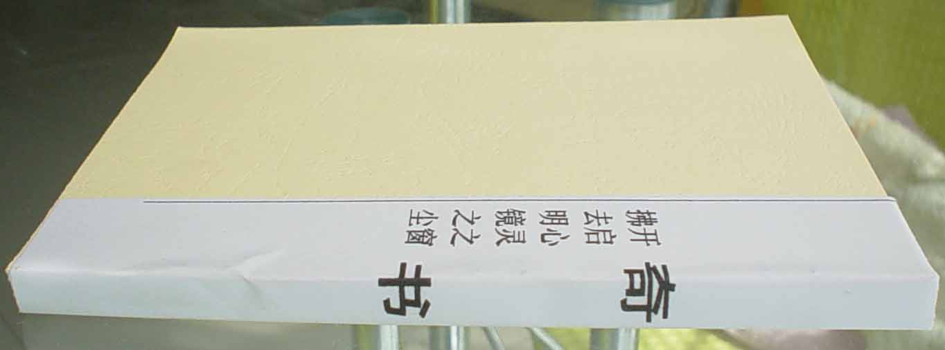 *》小册子自制版(1/4 A4)(2005.4);打印后,用切纸刀具切开(切注意要齐整),用封页纸(耗材商店有售30元左右/100张A4比普通A4纸厚各种颜色的都有)做皮。厚页订书机装订,注意要将装订边戳齐,装订。如图尽量要装订边窄一些――3mm左右。