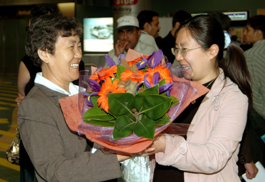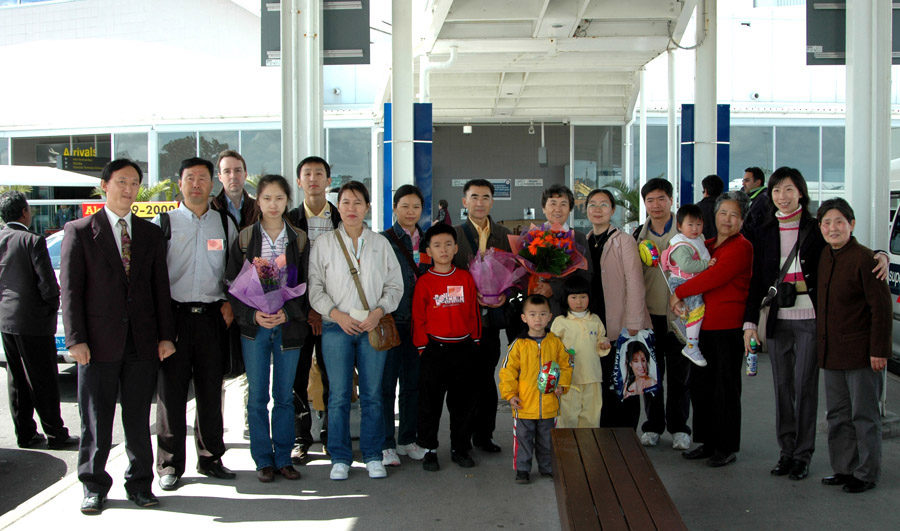 法轮功学员张瀚文,因坚持“真、善、忍”的信仰,被中共非法劳教两年三个月,并多次被非法关押,期间遭受酷刑折磨,导致胳膊不能正常弯曲等。一家人六年未能团聚,这次到达新西兰将与阔别已久的女儿法轮功学员和彦辰团聚。
