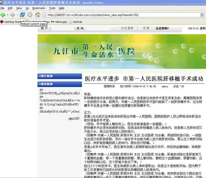 2。在该医院的网站上8月15日有标题为“医疗水平进步 市第一人民医院肝移植手术成功”的以下内容报道(https://288257.ctc-w160.dns.com.cn/system/news_view.asp?newsid=252):